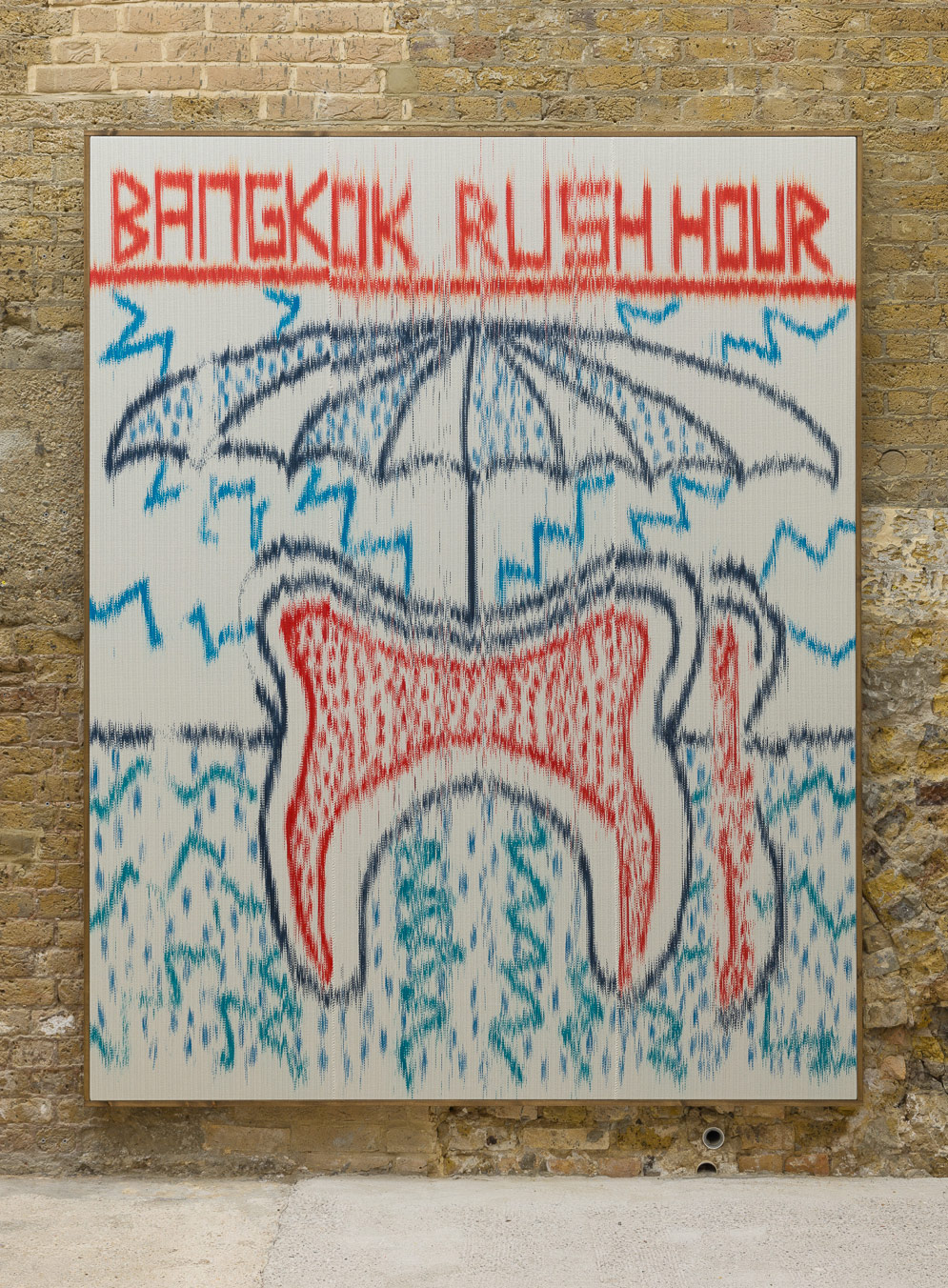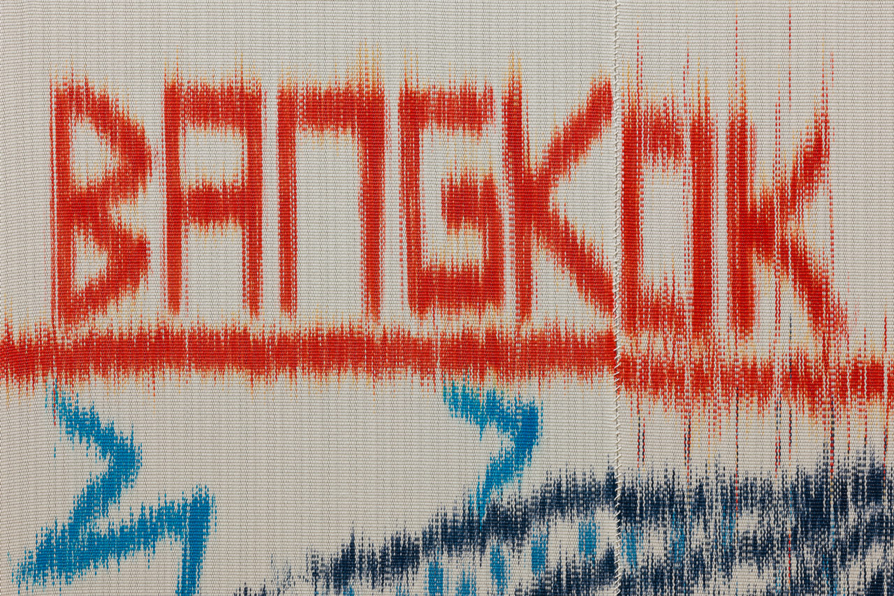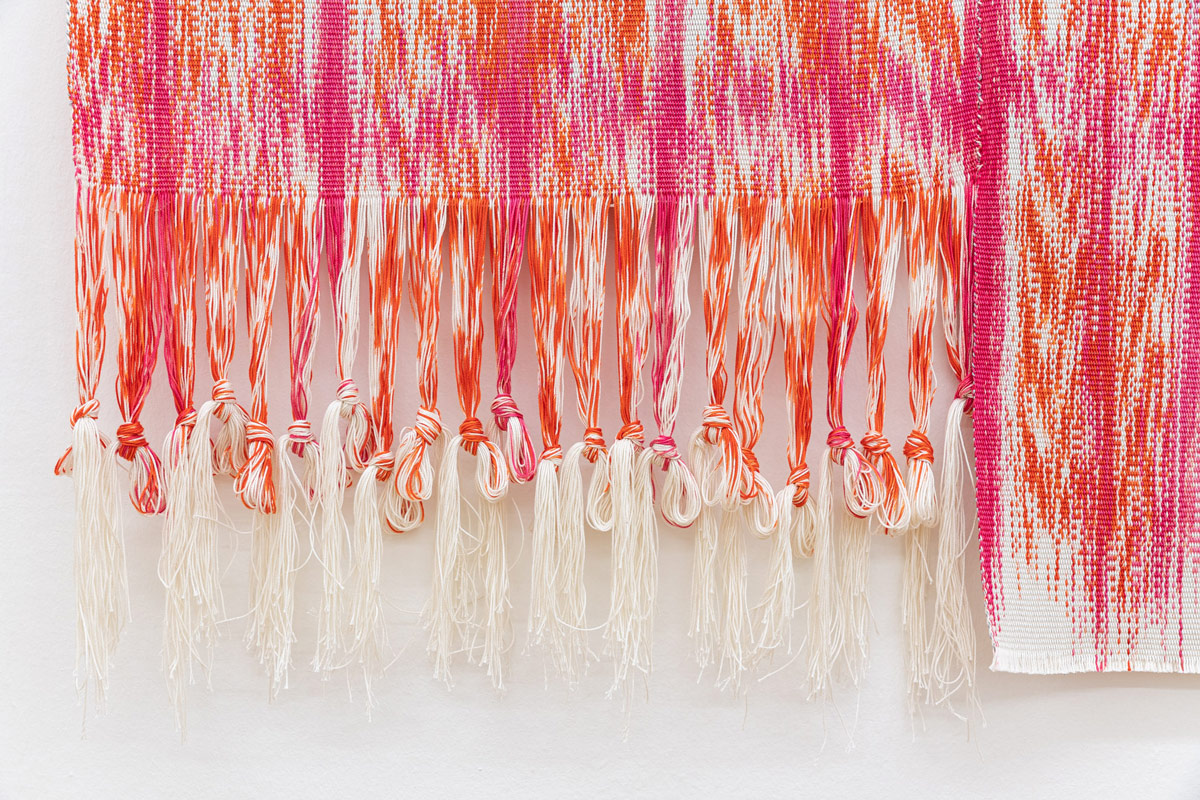 painted warp, hand woven cotton on canvas